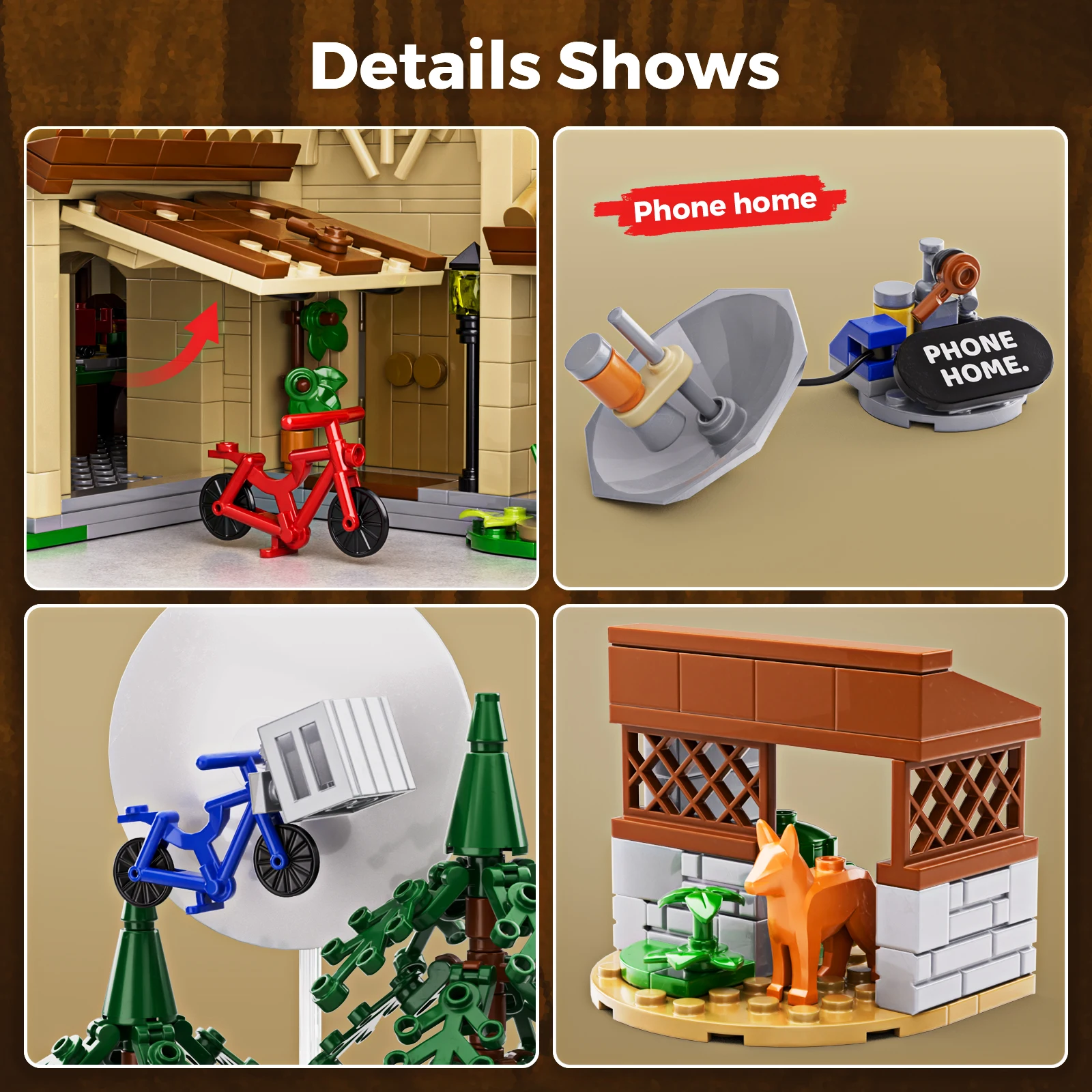 Build your own slice of cinematic nostalgia! This carefully designed set captures the heartwarming essence of a boy's extraordinary friendship with a visitor from the stars. Every detail - from the bicycle basket to the rooftop escape scene - celebrates adventure and connection