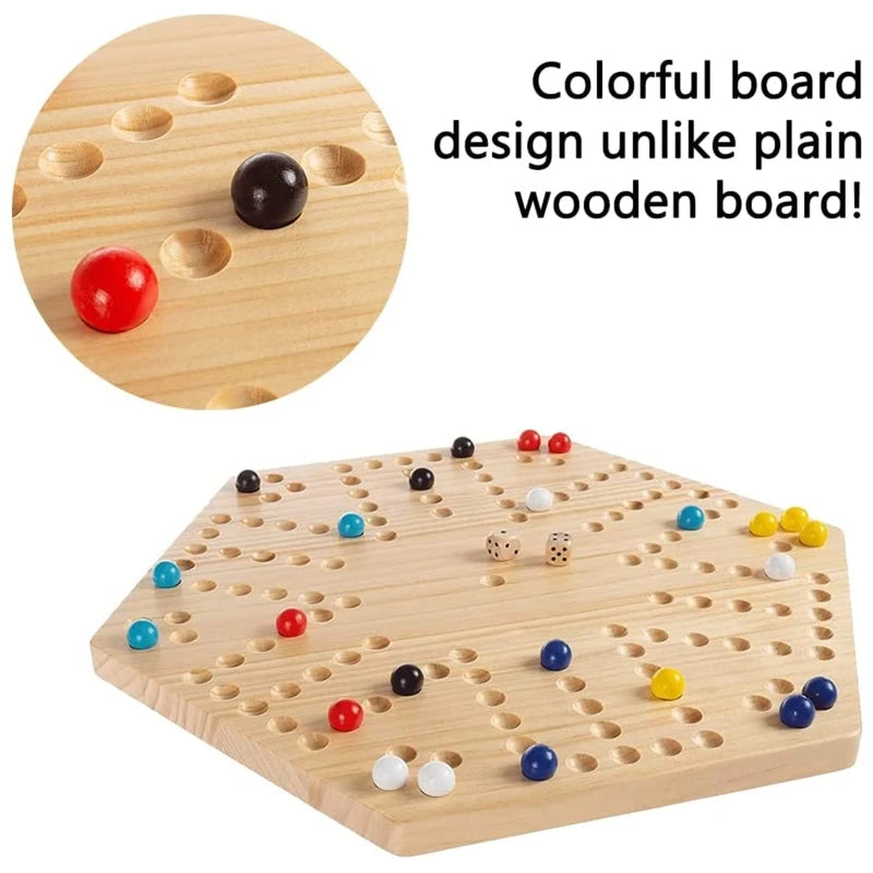 Wooden Aggravation Board Game Set with 6 Dice 6 Color Marbles Interactive Classic Family Game for Adult Indoor Gathering
