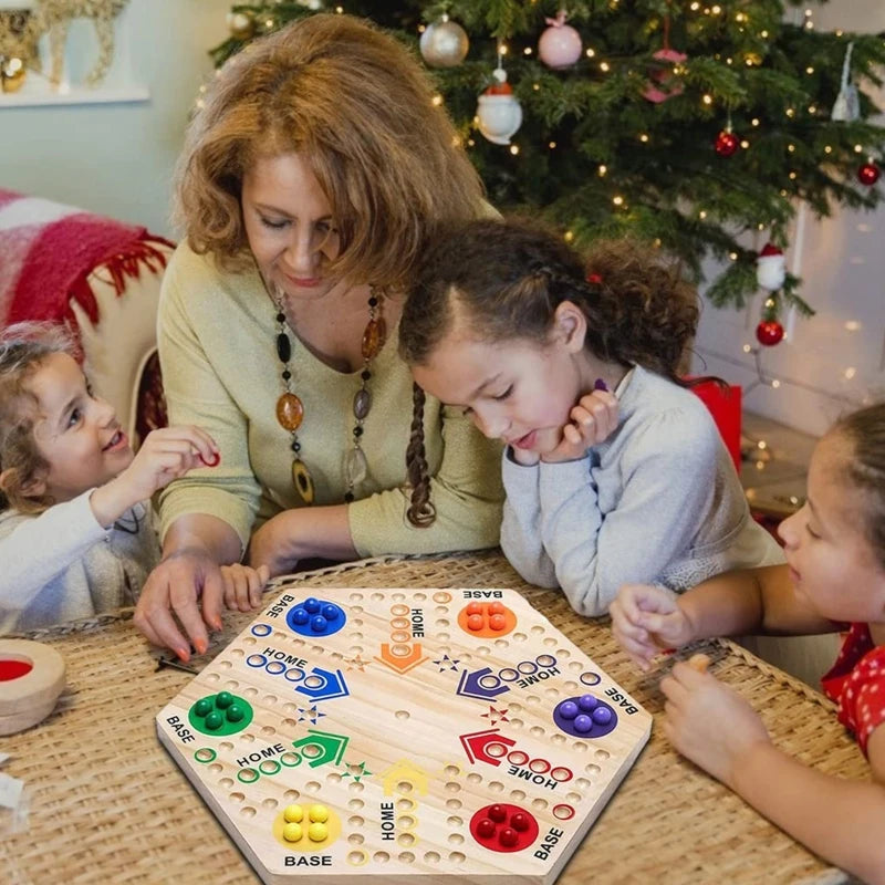 Selected Great Qualified Material: Our aggravation game board made by qualified solid hard wood, non toxic and eco-friendly water painted, wear-resistant,equipped with holes for easy navigation of marble during play, with durably performance to improve the play experience.